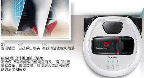三星智能扫地机器人走的是高档精品路线,普通家庭收入的用户可不用考虑这款。产品从外机看就是一台重量级清洁工具,不走颜值路线的三星智能扫地机器人非常专注内机双核CPU芯片性能。有了这枚芯片之后,此机在清洁过程中就能流畅的进行智能规划、智能分区和智能清扫。
