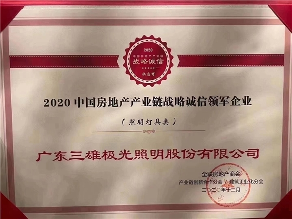 近日,由全联房地产商会主办、链筑两会(产业链创新合作分会、装配式建筑分会)联合承办的“2020中国房地产产业链战略创新峰会暨年度盛典”在上海隆重举办。三雄极光凭借诚信经营的行业口碑和社会责任,荣获“2020中国房地产产业链战略诚信领军企业”。