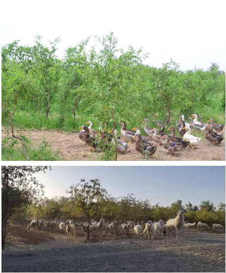在这片土地上,张新政探索出了一套良性循环的生态农业体系。该体系以生态红枣为核心,套养了生态牛、羊、鹅与蜜蜂。牛羊鹅的参与有效解决了无农药情况下农作物的除草问题,所产的粪便也为作物提供了有机肥,而无农药、无化肥的枣花则为蜜蜂提供了纯天然的酿蜜原料,以此实现了生态循环,同时进一步丰富了基地出产的生态农产品。
