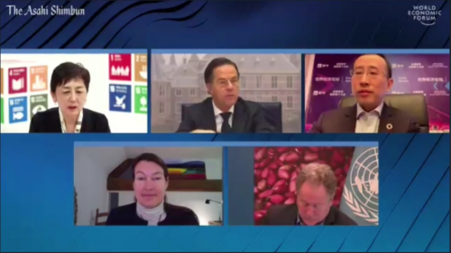 1月27日,正在呼和浩特参加内蒙古自治区十三届人大四次会议的蒙牛总裁卢敏放,受邀参加世界经济论坛“达沃斯议程”对话会,围绕“改变粮食系统和土地使用”这一话题,与荷兰首相马克·吕特、世界粮食计划署执行干事大卫·比斯利、荷兰皇家帝斯曼集团CFO Matchett等嘉宾展开探讨。会上,卢敏放分享了中国乳业节能减碳、满足公众营养需求等方面的经验,并就改善粮食安全等议题提出建议。
