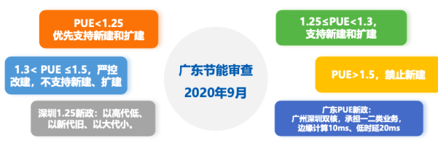2013年,工信部提出新建大型数据中心PUE不超过1.5;2018年,北京提出PUE不超过1.4,继而上海要求新建数据中心的PUE不超过1.3;2019年,深圳更是率先提出PUE低于1.25。