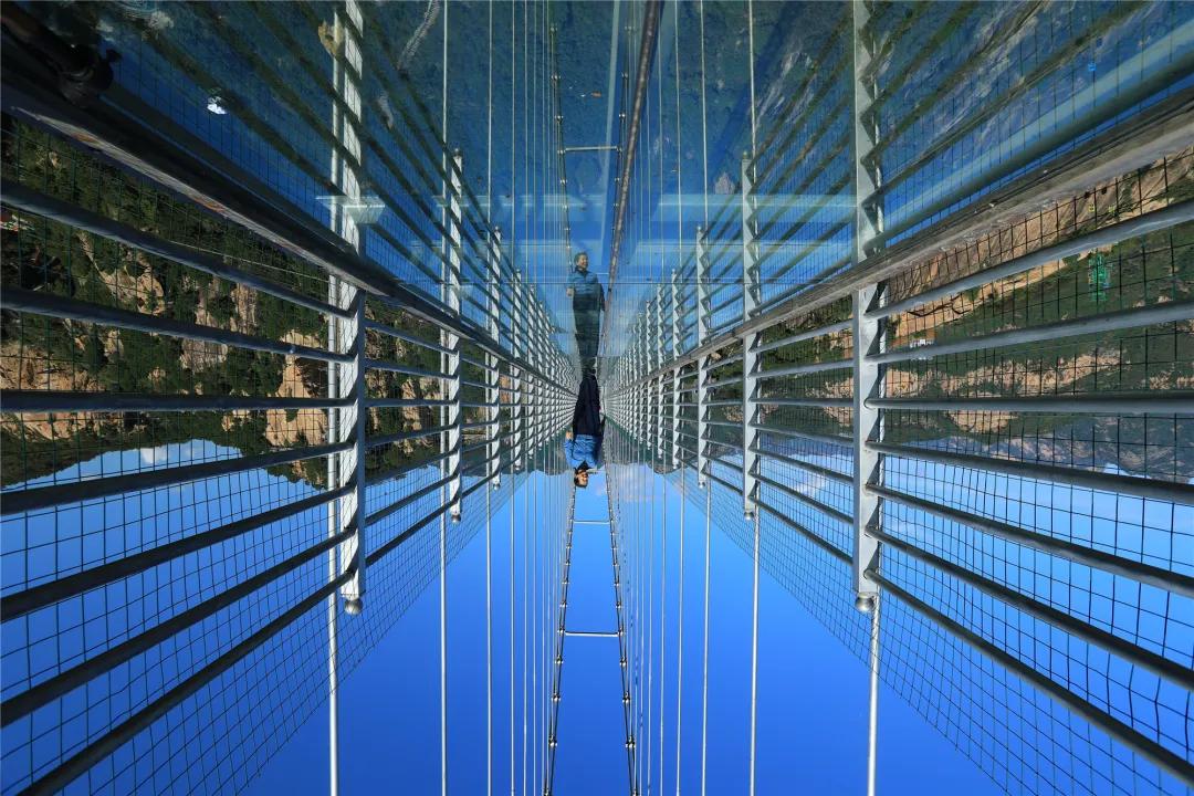 “人在云端走,景在脚底游”。你可以踩着峡谷之上横跨的玻璃天桥,在破碎声中轻松的把恐惧症治好。