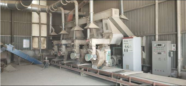 3、预压:通过环模与压辊在环态下挤压,将干燥的颗粒进行预热压缩;