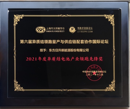 异质结电池产业年度奖项的评选旨为表彰异质结产业链领跑企业在技术创新、示范应用、量产推广等方面作出的卓越贡献。2021年12月16日,在TUV南德权威认证下,东方日升宣布高效异质结系列组件最高功率达到721.016W,组件效率高达23.65%,这是公司一年内第三次刷新自己创造的异质结世界纪录。作为较早布局N型异质结技术的光伏企业,东方日升以技术升级引领行业进步,以领先优势高筑公司N型技术护城河,“领跑先锋”即是对公司创新实力的最佳褒奖。