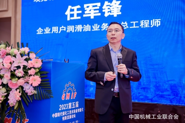 (埃克森美孚中国企业用户润滑油业务部总工程师任军锋发表演讲)