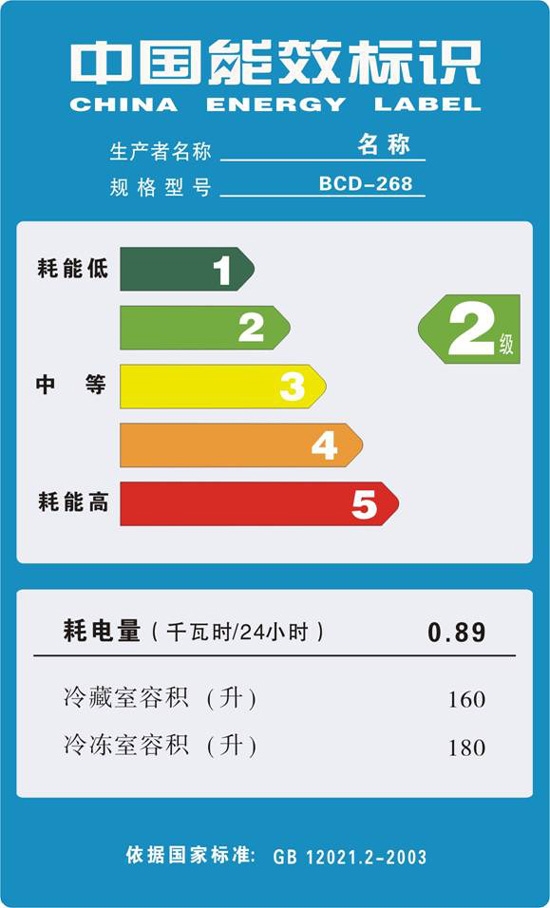 家用电冰箱能源效率标识