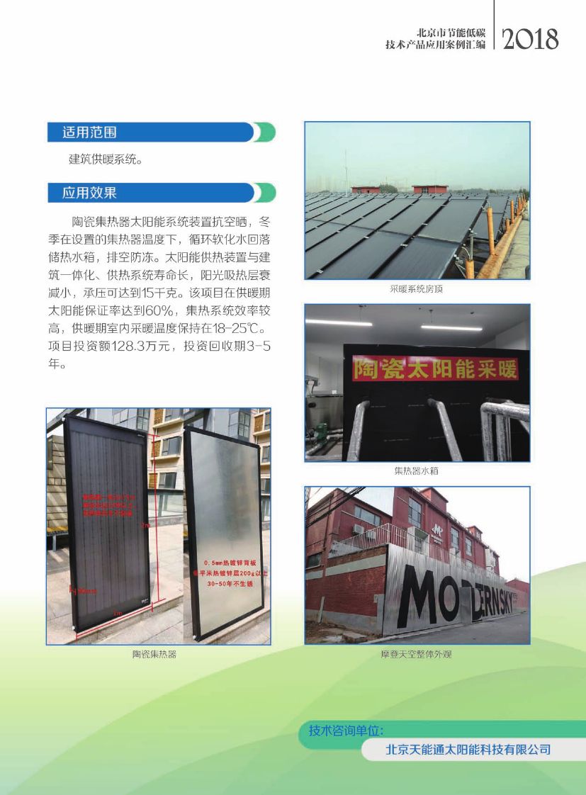 该技术主要包括太阳能集热系统、热泵系统、室外地源换热系统和室内末端系统,通过优化控制,将太阳能光热技术、浅层地源热泵技术和土壤储热技术有效结合,充分利用可再生能源,为建筑物供暖和制冷。
